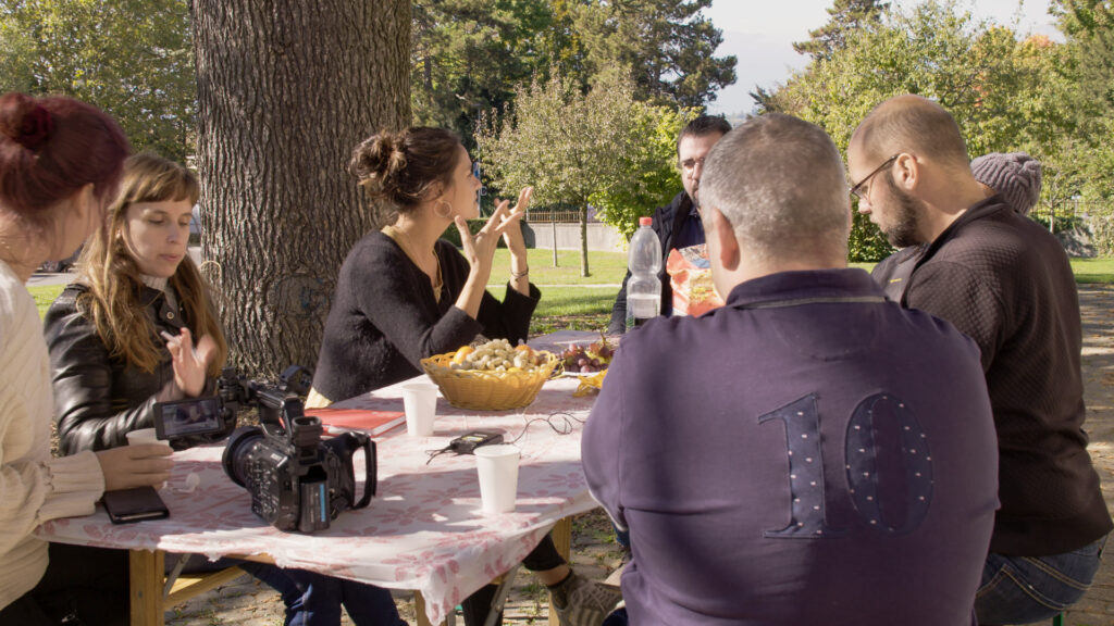 Notre projet documentaire repose sur une approche respectueuse et collaborative des enquêté·e·s. Dans la mesure où il se base sur le témoignage, ce qui compte pour les personnes elles-mêmes est central. En se donnant pour objet « le réel », par définition mouvant et imprédictible, le tournage laisse une large place aux imprévus; les changements de vie des uns et des autres, les idées et envies qui émergent lors des discussions et même le hasard nourrissent l’enregistrement des scènes, la sélection des images, le montage et la construction finale du récit documentaire.