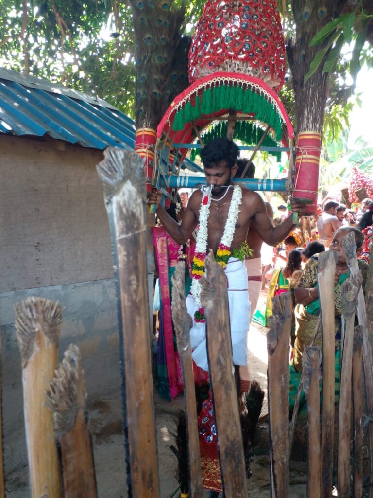 C’était la première fois de ma vie que je participais au Kavadi. Comme c’était ma première expérience, j’étais effrayé depuis 2 ou 3 jours mais après avoir été percé par les crochets et avoir soulevé le Kavadi, je me suis débarrassé de cette peur et de cette nervosité.