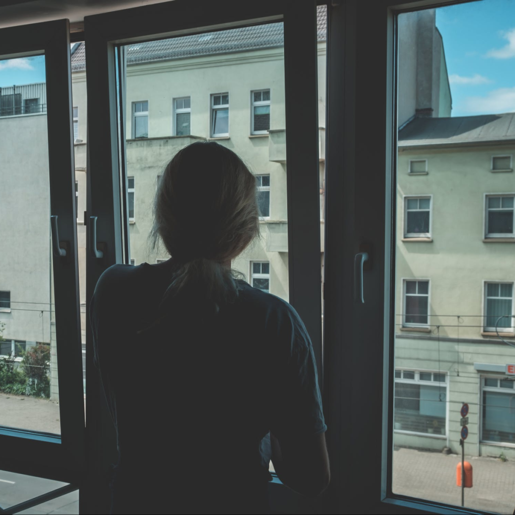 Pendant ce temps-là, des visages apparaissent aux fenêtres de l’immeuble d’en face, cherchant à comprendre l’enjeu de la scène, soit furtivement, cachés derrière les rideaux, soit ostensiblement, penchés hors du cadre de la fenêtre ou sur les barrières des balcons : une femme fait rentrer ses deux enfants, une vieille dame observe cachée derrière son rideau de dentelle, un père de famille entrouvre la fenêtre et tend l’oreille, trois jeunes hommes se penchent depuis leur balcon en riant pour ne rien manquer, et deux hommes que je vois souvent prendre l’apéro sur leur balcon sortent et s’allument une cigarette. Comme je m’interroge sur les raisons d’une pareille furie, j’entends soudain à nouveau la voix du haut-parleur : « Vous n’avez rien à faire dehors ! Vous n’êtes que des égoïstes, rentrez chez vous et participez à l’effort collectif ! ». J’aperçois alors, accroupi derrière la balustrade du balcon qui suscite l’attention du petit rassemblement, une silhouette tenant à la main un mégaphone. Je ne sais pas qui habite cet appartement et, de ce que je peux en apercevoir, le voisin qui l’occupe m’est totalement inconnu.