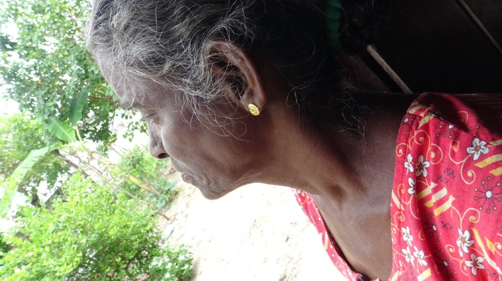 Je m’appelle Nithya, j’ai 65 ans, cela fait 10 ans que je vis ici, j’ai 4 enfants, ils sont tous mariés. Mon mari et moi vivons dans cette maison. Il travaille comme ouvrier.