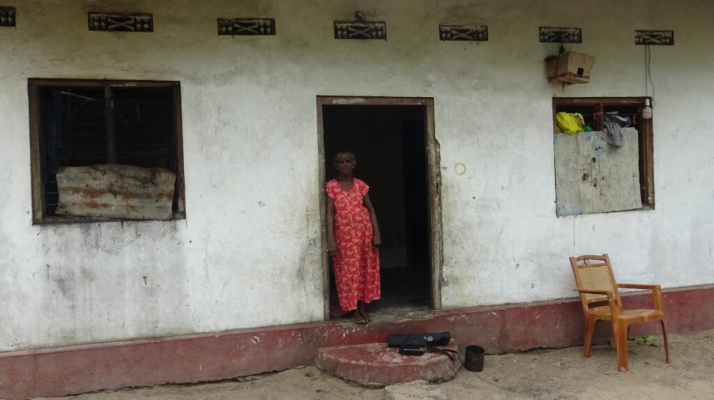 Non. J’en obtiens parfois si je rends service au village. À côté de cela, un garçon suisse qui s’appelle Damien m’aide depuis six mois. Il m’envoie 35’000 LKR par mois. Cela nous a été d’une grande aide. Quand mon mari a été frappé d’incapacité, nous vivions de l’argent envoyé par cette personne. Il nous a dit qu’il ne pouvait nous aider que pendant six mois. Six mois se sont maintenant écoulés, il a cessé d’envoyer de l’argent. Nous n’avons donc de la nourriture que lorsque mon mari part travailler.