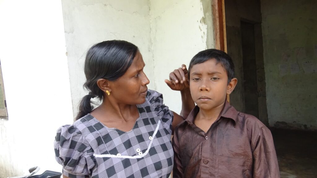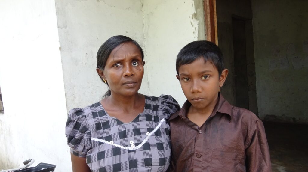 Mon nom est Senkadhir Kutti, mon mari s’appelle Senkadhir, j’ai un fils. J’ai 44 ans. De l’âge de trois ans jusqu’à l’âge de treize ans, j’ai grandi dans une maison d’enfants. J’ai pris part à la guerre de mes treize ans à mes vingt-huit ans. J’y ai perdu un œil. J’en garde encore des blessures aux bras et aux jambes et des morceaux de fer sont encore présents dans de nombreuses parties de mon corps. Ensuite, j’ai épousé mon mari le 26 décembre 2012. Maintenant, j’ai un fils.