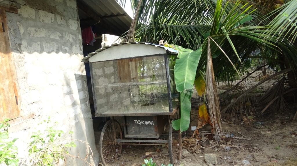 Il vend des collations qu’il entrepose sur un chariot dans la rue. Ses revenus ne suffisent pas à nous faire vivre.