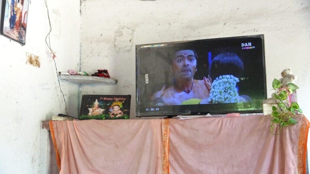 Cette pratique a affecté ma vie. Mes parents sont pauvres. Ils ne peuvent pas donner de grosses sommes d’argent et des bijoux. Selon la tradition tamoule, ma famille devait donner de l’argent, la dote à mon mari lors du mariage. La moitié de cette somme me serait versée lors du mariage sous la forme de « thaali » ( des colliers d’or que la femme porte comme symboles du mariage et de propriété du mari). Mon mari aurait dû donner l’autre moitié de cette somme à ses quatre sœurs. Comme ma famille n’avait pas assez d’argent, sa famille ne voulait pas de moi pour marier son fils. Mais mon mari m’aimait beaucoup, nous nous sommes donc mariés, dans le secret, sans sa famille. Maintenant encore, ils ne veulent pas m’adresser la parole. Seule la mère de mon mari a une petite relation avec moi depuis que j’ai eu un bébé. Tout ce que mes parents ont pu me donner, c’est leur propre maison. Ils doivent aussi fournir une maison pour les jeunes mariés. Mais ils ont été obligés de nous laisser la leur et de retourner vivre sans abri dans leur village d’origine. Maintenant, ils y ont construit une hutte et y vivent. Je n’en veux pas aux sœurs de mon mari pour leur attitude, elles aussi doivent fournir de l’argent pour leur propre mariage. Comme leur père est décédé, elles ne pouvaient compter que sur l’argent qu’elles allaient recevoir lors de mon mariage avec leur frère.