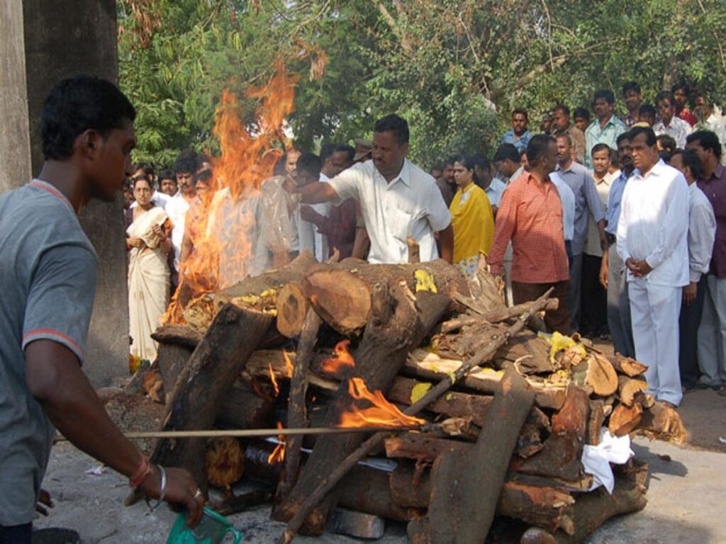 Autrefois, les femmes n’étaient pas autorisées à visiter les cimetières. Seuls les garçons pouvaient y aller et accomplir les rituels. De nos jours, les femmes vont dans les cimetières. S’il n’y a qu’un seul enfant mâle dans une famille, c’est lui qui brûlera le corps de son père ou de sa mère. S’il y a deux fils, le fils aîné doit brûler le père et le fils cadet, la mère. Après avoir brûlé le corps du défunt, tout le monde rentre à la maison.