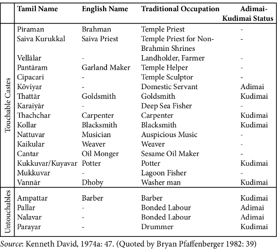 Les castes dans la société de Jaffna :