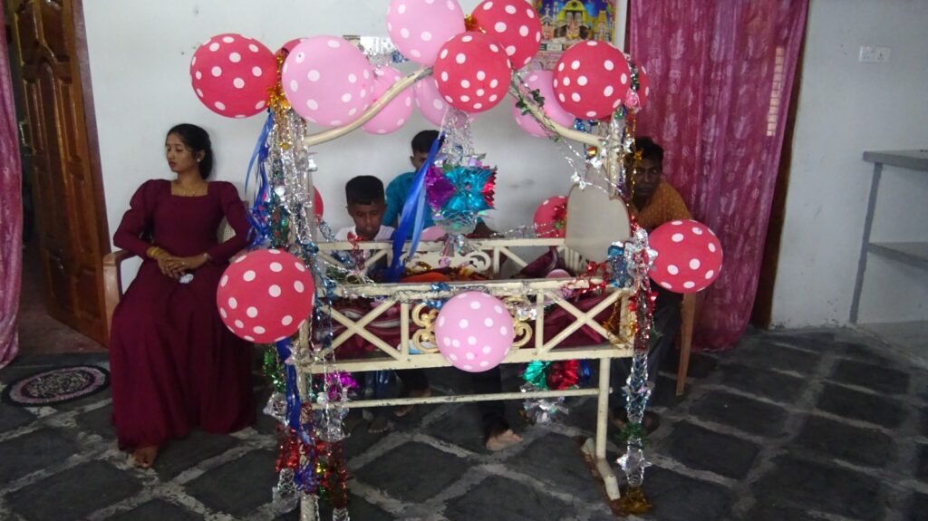 Selon la tradition tamoule, il vaut mieux accoucher d’abord d’un garçon. Parce qu’on pense que l’enfant mâle doit prendre soin de ses parents quand l’un d’eux meurt?; il sera responsable de la gestion de la famille?; si le père n’est pas physiquement capable, le garçon ira travailler et portera la charge familiale?; s’il a des sœurs, il les mariera. Et si le père meurt, le fils prendra soin de la mère jusqu’à la fin. Donc tout le monde s’attend à ce qu’un garçon naisse en premier.